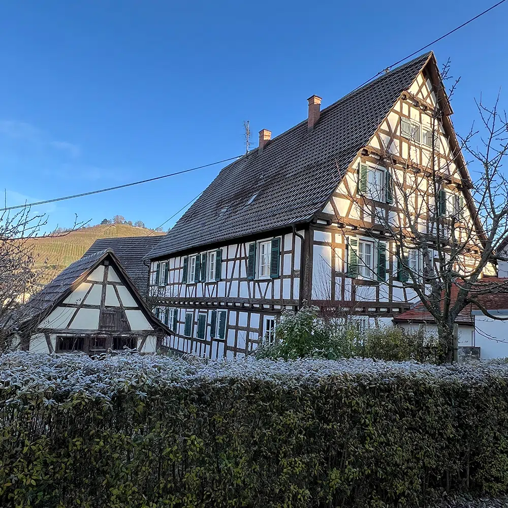 Die Wohnung im Obergeschoss und Dachgeschoss des über 300 Jahre alten Fachwerkhauses wurde für den neuen Pfarrer der evangelischen Kirchengemeinde renoviert und um ein Bad im Dachgeschoss ergänzt.